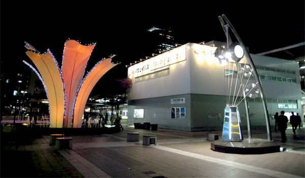 JR名古屋駅の中央コンコースから屋外への出口・太閤通口からすぐ、駅前にある「ゆりの噴水」。ゆりを模したオブジェクトのような印象的な形状と、立地のわかり易さから、名古屋では著名な待ち合わせスポットとして幅広く知られています。
