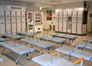 券売り場の奥には50席程度の座席がある待合スペース。トイレと飲料の自販機もあります。